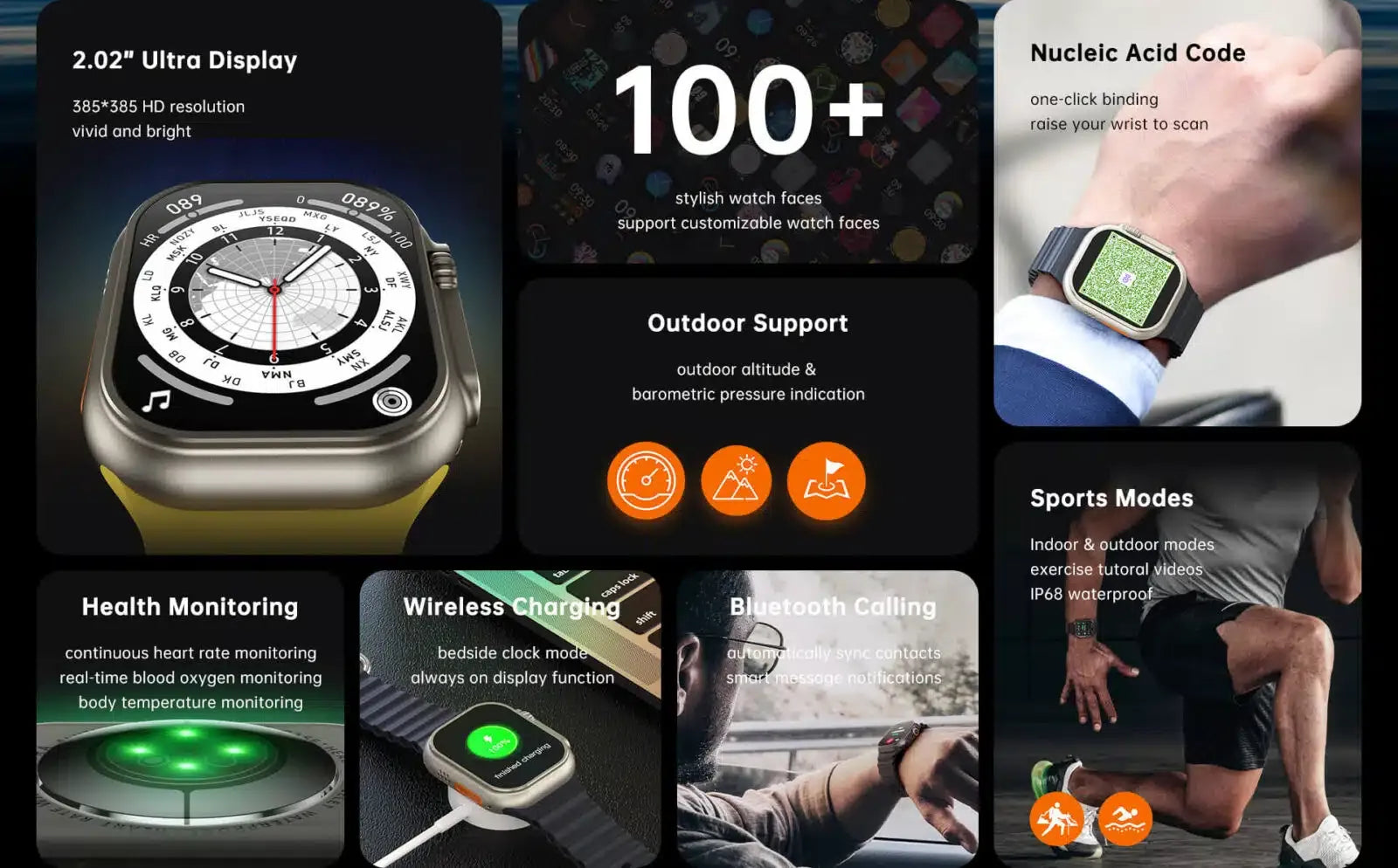 Smart Watch Ultra 8+1 with health tracking, notifications, and a stylish, durable design. Perfect for daily use and fitness.